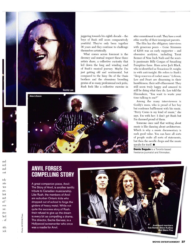 Speaking of the Rush documentary, nearly 5 months after its premiere the film Rush: Beyond the Lighted Stage is still receiving accolades from critics and fans alike. While it's no particular wonder when Rush fans are quick to praise the film, it is both surprising and gratifying when non-fans do the same. This is demonstrated in a recent review of the movie from Canadian magazine Movie Entertainment which you can check out by clicking on the thumbnails. Thanks to louisg for the heads up and the scans.