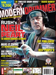 Neil Peart was the feature of a cover story in the December, 2011 issue of Modern Drummer magazine. The issue hit newsstands late last month and a few excerpts were made available online at Cygnus-X1.net. Neil touches on a number of subjects in the interview including how he prepares for a tour, how he deals with the rigors of touring, his approach to composing drum parts and the inspiration behind his recently-released Taking Center Stage instructional video. Earlier this week Modern Drummer posted a web-exclusive addendum to the interview where Neil has more to say on his instructional DVD, and also touches on his appearance on the David Letterman Show's Drum Solo Week this past summer and his surprise appearance at KoSA. You can read it at the Modern Drummer website here and check out the Modern Drummer review of Taking Center Stage here.