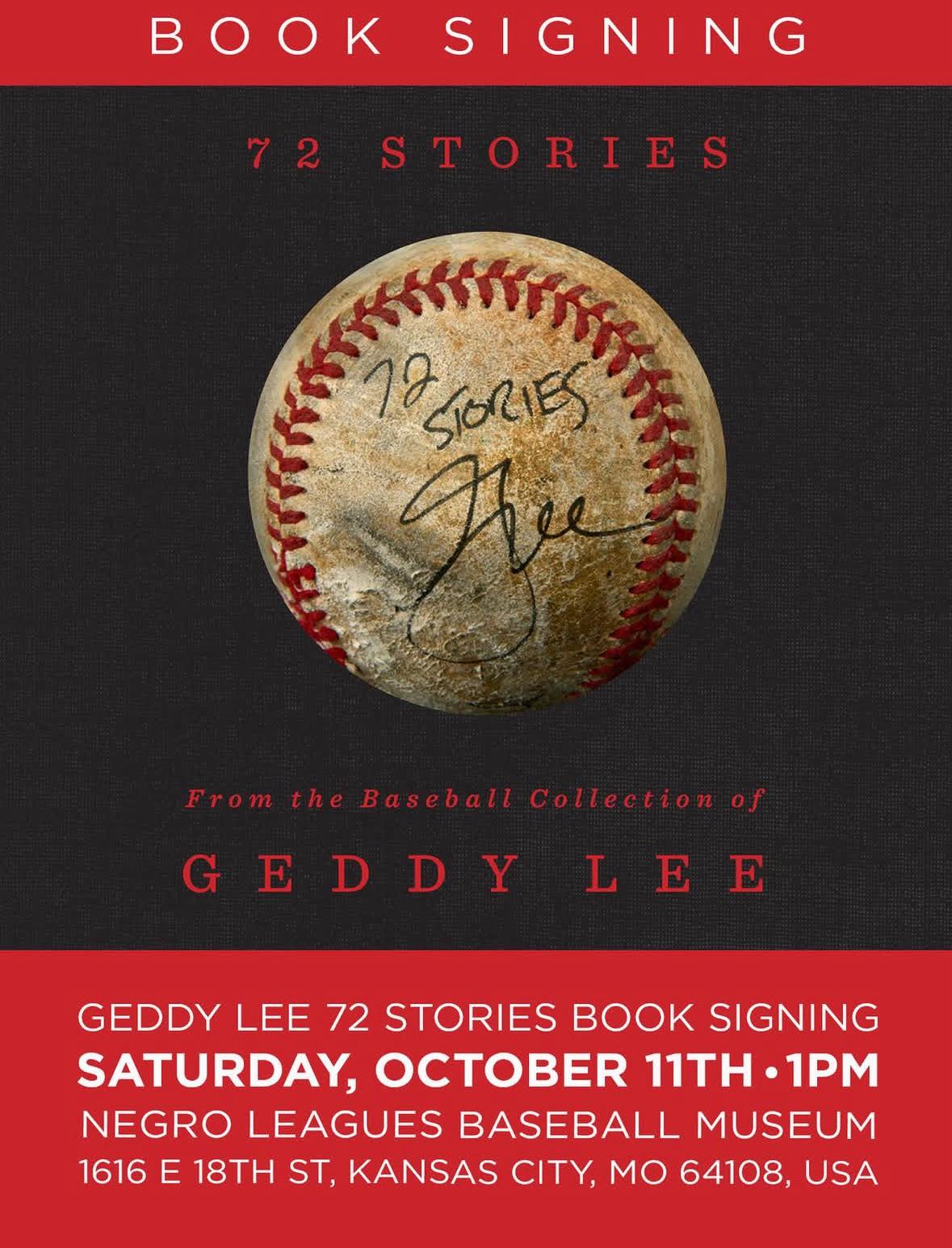 Thrilled to welcome the legendary Geddy Lee back to the Negro Leagues Baseball Museum for a discussion and book signing for his amazing new release, "72 Stories: From the Baseball Collection of Geddy Lee! The big event is planned for 1 pm, Saturday, October 11 at the NLBM.