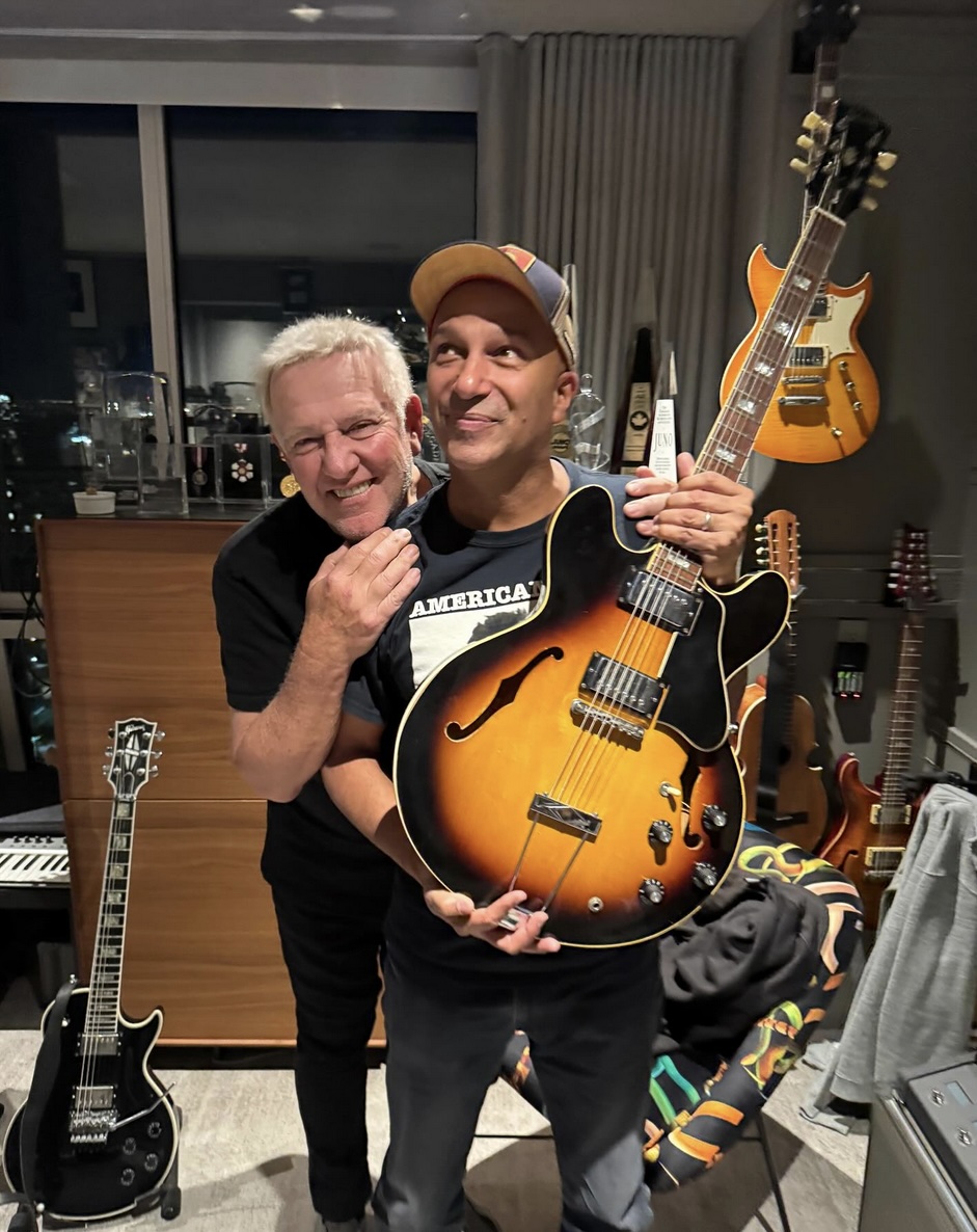 Guitarist Tom Morello (RaTM, Audioslave) is currently on a solo tour, and played a show this past Tuesday in Neil Peart's hometown of St. Catharines at Partridge Hall. The band has several days off until their next show in Montreal, so Morello took some time to hang out with his buddy Alex Lifeson yesterday in Toronto. Lifeson showed Morello his vintage Gibson ES-335, prompting this Instagram post where he gushes over the guitar: